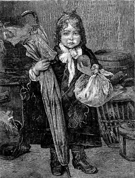 It was little Jeanie Lowrie waiting for her grandfather's return. Old Sandy Lowrie, thinking to take advantage of their stay overnight in New York to visit his foster-son, who had left Scotland for America when a lad, had gone out in the afternoon into the great city, bidding Jeanie carefully guard their small luggage—a few treasures tied up in a silken kerchief, and Granny's precious umbrella, which was a sort of heirloom in the family.