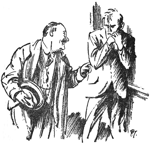 “He stood there looking at me like a silly fool. A rather smallish chap, dressed up to the nines, with a necktie like a rainbow in a fit. If he’d been a gal I should ’ave called ’im rather good-looking, but ’e was too pretty-pretty [Pg 5]for a man. Twice he opened ’is mouth to speak, and only gave a silly smile instead.