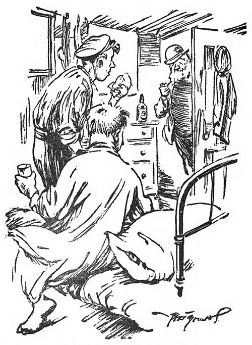 “‘I suppose I’d better ’ave the same,’ says the doctor. ‘I don’t believe in mixing. Tell ’im to give us the special this time. It’s better.’