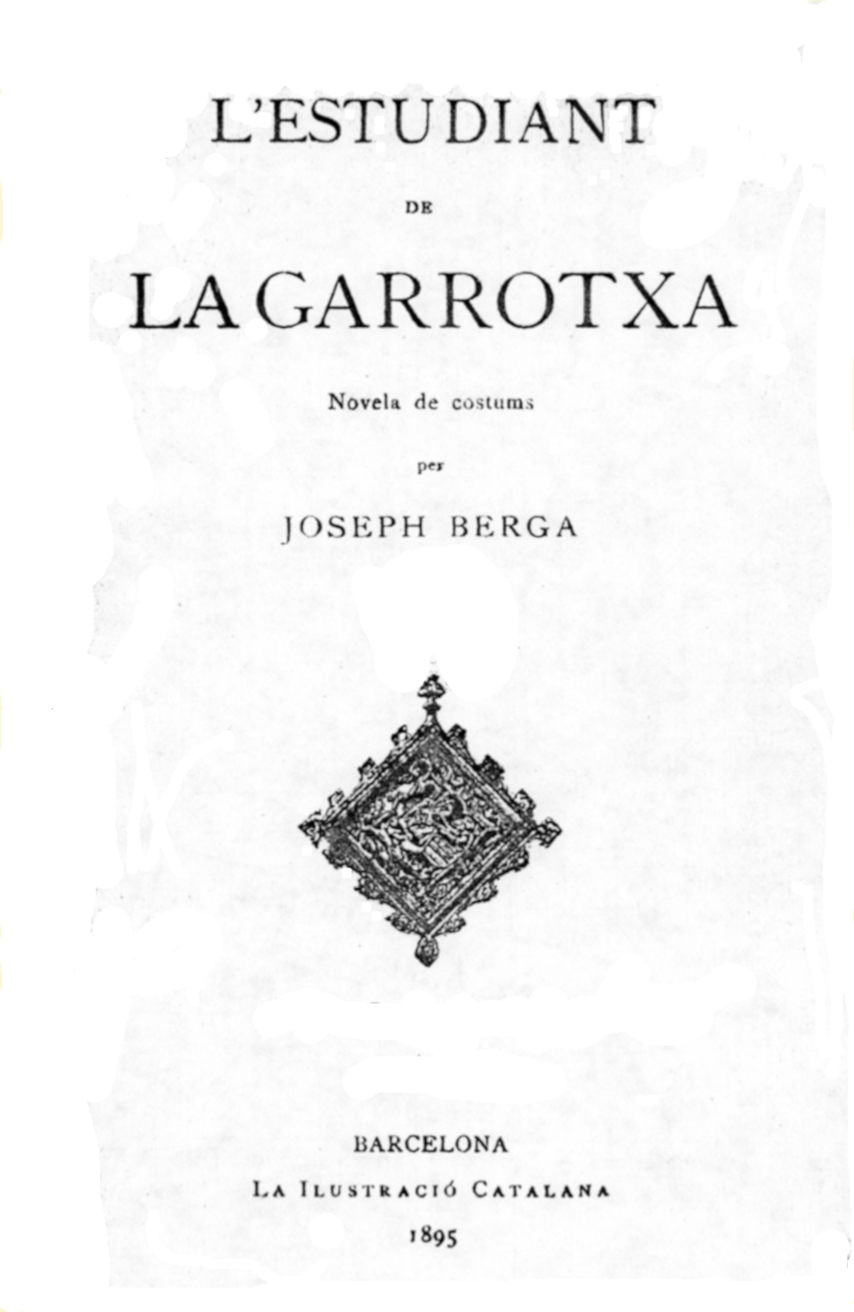 Vaig debutar en un poble pintoresch de La Garrotxa, qual iglesia situada al extrem d’enlayrada cinglera de noranta metres d’alsaria, té per fonaments apilonada multitut de prismas basáltichs de colossal figura, banyats d’un costat pe’l Fluviá, que baxa en tal indret casi sempre turbolent y esvalotat, d’altre pe’l Turonell, més modest, però fressós y rapetani, juntantse abdós y confonentse al peu del cingle pera córrer cap á mar ab més rumbo y fatxenda.