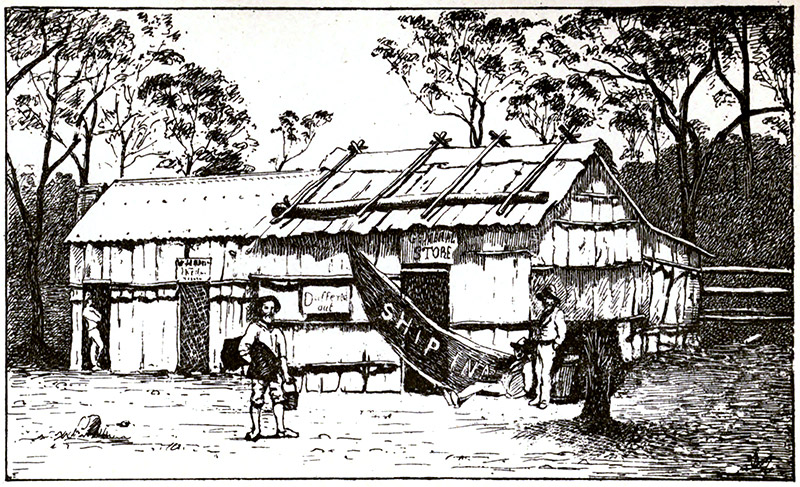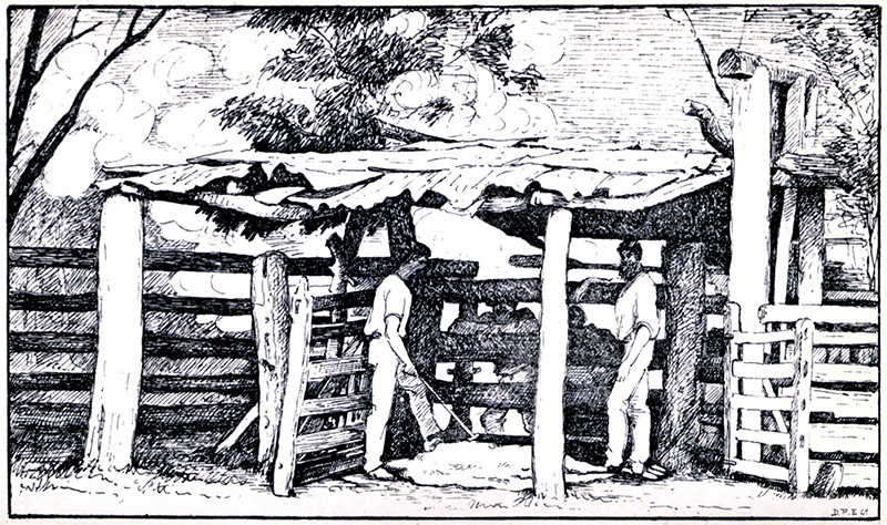 Having dragged him into a less apoplectic position, we turned into the hotel. There was no one up, but it was open; so we went upstairs and hunted about for a couple of empty rooms. After one or two bad shots, which disclosed the prostrate forms of several sleepers, most of whom had gone to bed in their boots, we found what [Pg 26]we wanted, and turned in. It was pretty hot, and the musquitoes made it rather lively, but we got a few hours’ sleep, and next morning turned out early to get ready for a start up to the station. The first thing we heard from my brother’s black boy, who was waiting about the town for him, was that the horses had got out of the paddock. They were certain to go straight back to the station, so my brother borrowed a horse and sent the boy down the road to look for them. He got them about ten miles away, and did not reappear till the middle of the day.