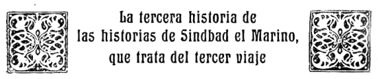 | LA TERCERA HISTORIA DE LAS HISTORIAS DE SINDBAD EL MARINO, QUE TRATA DEL TERCER VIAJE | 88-107 |