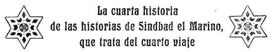 | LA CUARTA HISTORIA DE LAS HISTORIAS DE SINDBAD EL MARINO, QUE TRATA DEL CUARTO VIAJE | 107-126 |